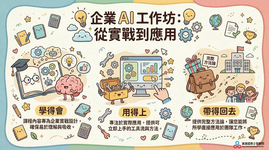 課程強調實戰操作與即學即用,讓學員在短時間內熟悉工具操作,將 AI 技術靈活應用於部門工作中,全面提升工作效能與創造力。